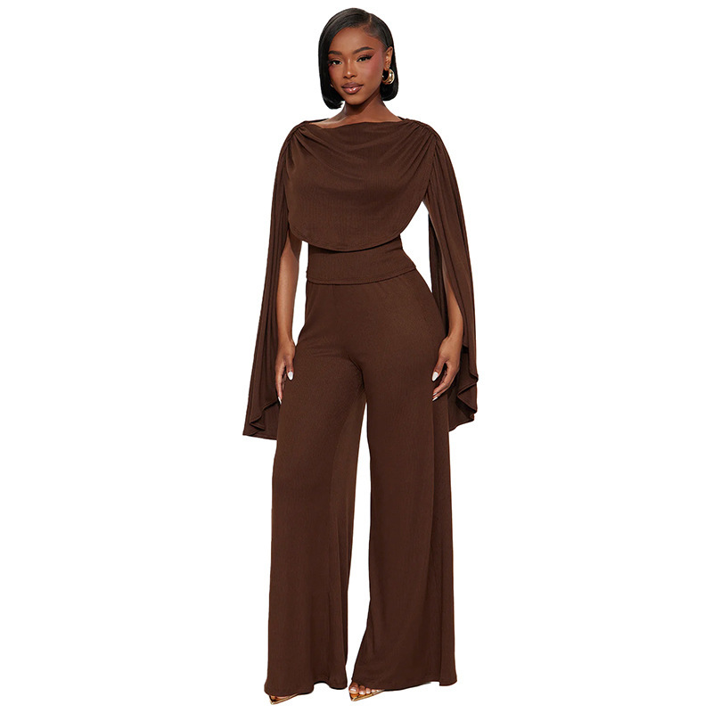 Women’s Solid Color Casual Slim Swing Neck Sleeveless Top And Ribbed Pants Set